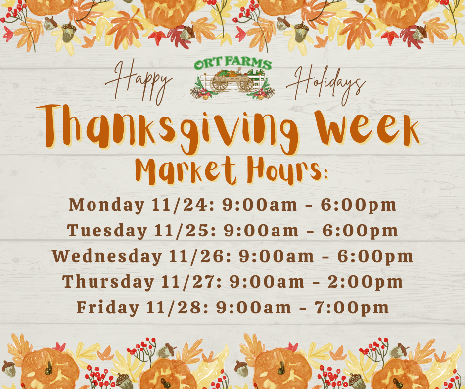 Our farm market will be open for pie pick up and market shopping all week! For all events - click the link below!